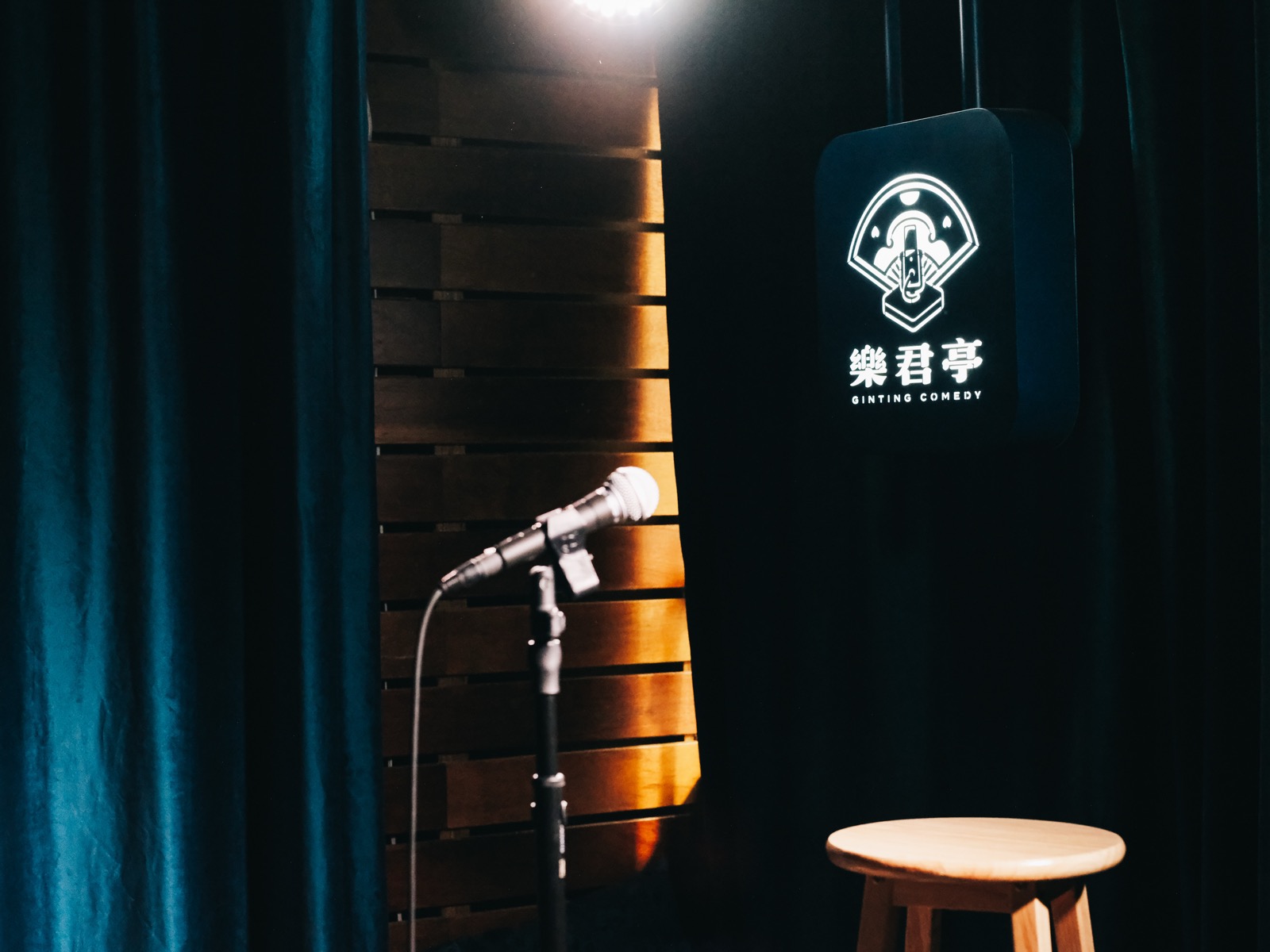 桃園第一間喜劇基地「樂君亭」,平日隔著車水馬龍的街道,宛如西部牛仔電影中的小酒館,靜靜地與周圍的喧囂隔絕開來,直到週末前的夜晚降臨,穿梭的人們方為沉靜的空間注入一股活力與生氣。樂君亭每週五晚上舉辦Open Mic活動,來自四面八方的喜劇愛好者齊聚一堂,大家在歡聲笑語中釋放壓力,讓心靈得以短暫安歇,彷彿一切的疲憊都隨著夜色悄然消散。