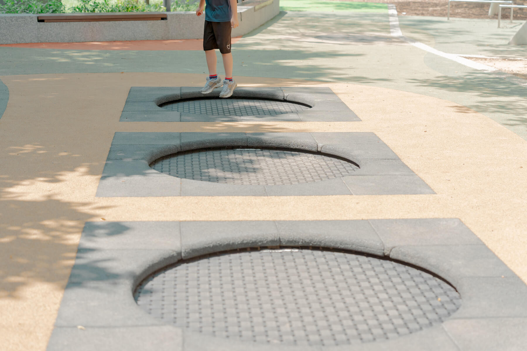 *旅人筆記:光明公園的設計鼓勵五感體驗,像是可以接觸的花果枝葉、或在沙坑中感受細沙滑過指縫,並有簡易的洗滌區提供清潔,充分放電後,晚上再順道去旁邊的中壢觀光夜市補充能量!