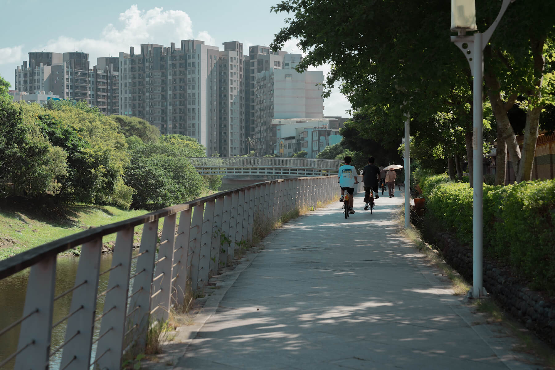 以河川環境教育為主題的「老街溪河川教育中心」,透過展覽、互動裝置與課程體驗,讓訪客瞭解老街溪的整治歷程、河川生態與在地文化。場館外圍即是整治後的老街溪水岸自行車步道,午後的陽光灑落水面,騎著單車享受微風輕拂,在這裡或動或靜,感受河水流動、鳥語花香相伴的悠然氛圍,展現城市與水共生的柔和面貌。