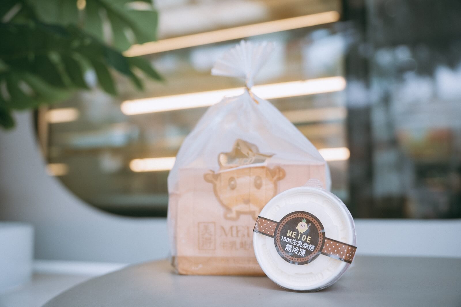 藏身桃園八德區東勇北路上的聯排透天厝中,「美德糕餅舖」是在地老字號糕餅店,門市整修前以傳統糕餅為主打,二代接手後西點品項也漸漸嶄露頭角,店頭整潔樸實,因主打生乳系列產品,擺放著可愛的乳牛裝飾,店內長桌上整齊排列吐司若干,冷藏展示櫃陳列各式蛋糕,個個造型甜美可愛,引人駐足。