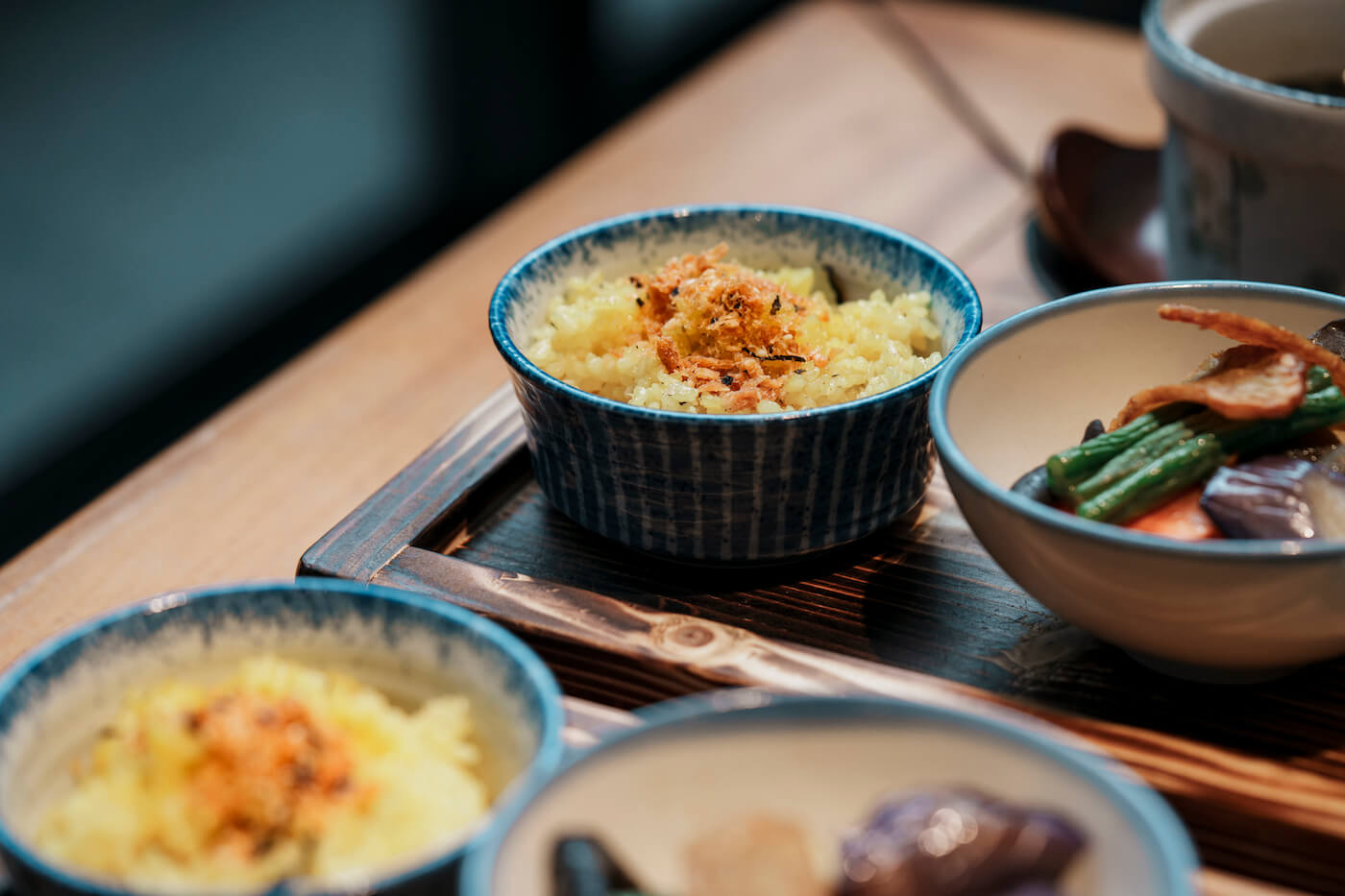 主食「薑黃飯」,薑黃來自部落朋友自種,由店家發酵製成薑黃酵素,與米食共煮後,使薑黃飯帶有一股別緻的果香。搭配其他配菜如焗烤菇類、蜜汁豆包、味噌豆腐、秋葵丸子等,道道充滿職人巧思,精緻中吃得到扎實分量,十道料理下來,絕對能夠帶走飽腹與滿滿的驚喜感。