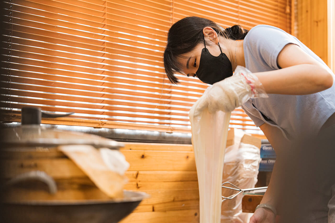 而做麻糬絕非易事,堅持手作的傳統滋味需要大量勞力,辛苦阿婆都看在眼裡。過去,店裡使用月桃葉盛裝麻糬,月桃葉於城市中取材不易,通常生長於山區,需熟人領路才能採摘。有次月桃葉用完了,梁文憶發現時卻看見阿婆已經替她採回,「我當下真的很感動,在外因為『老闆』這個角色,我需要表現得非常堅強,但是回到家我永遠是被阿婆寵愛的孩子。」