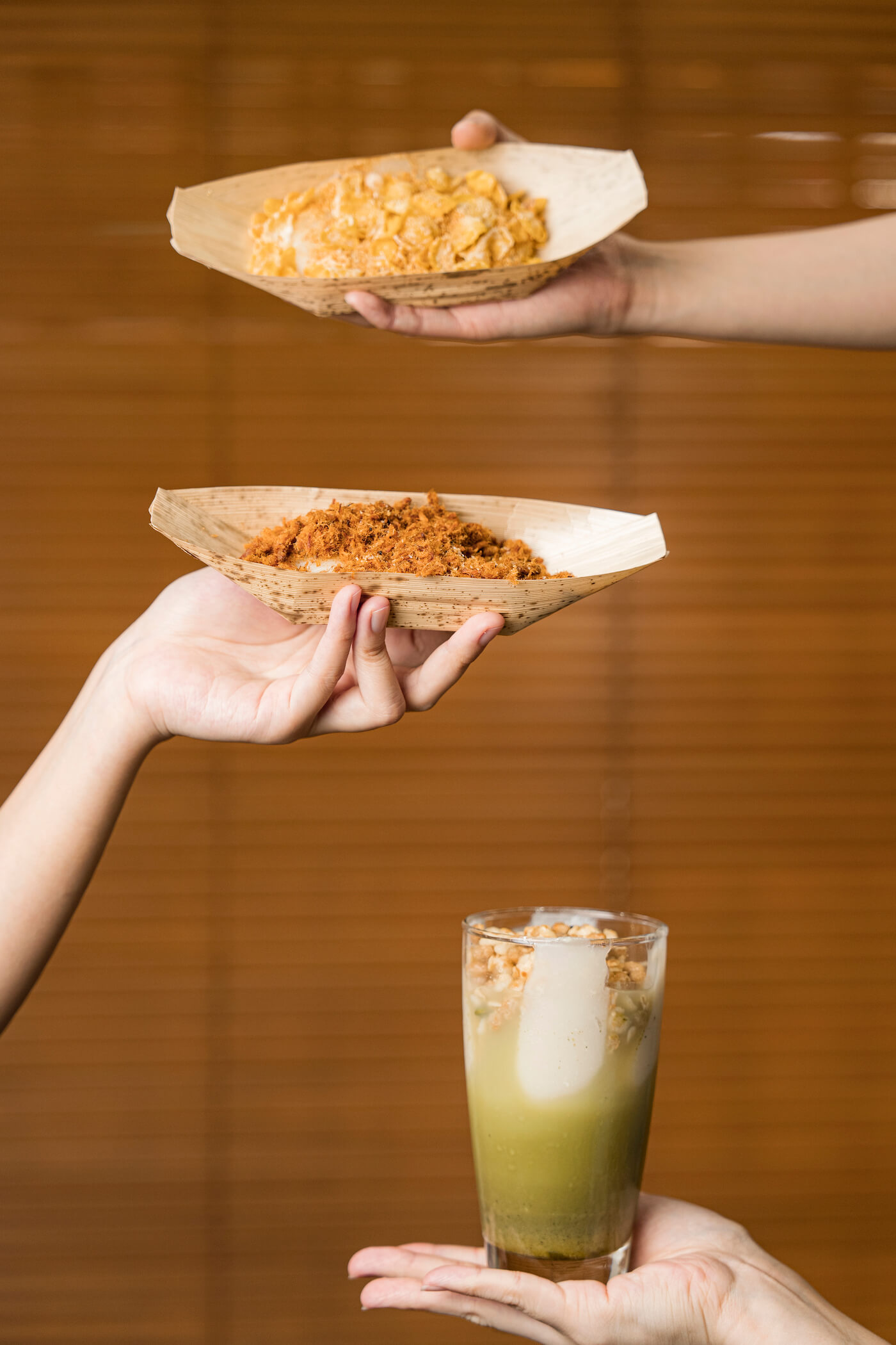點一個菜單上名為「甜」的麻糬,原味麻糬撒上由彰化 9 號花生自磨自調而成的花生粉,不甜不膩,品嚐食物原始的香氣;「鹹」則是原味麻糬搭配自製肉鬆,用米香襯出肉脯的鹹香,吃的是一種傳統滋味。