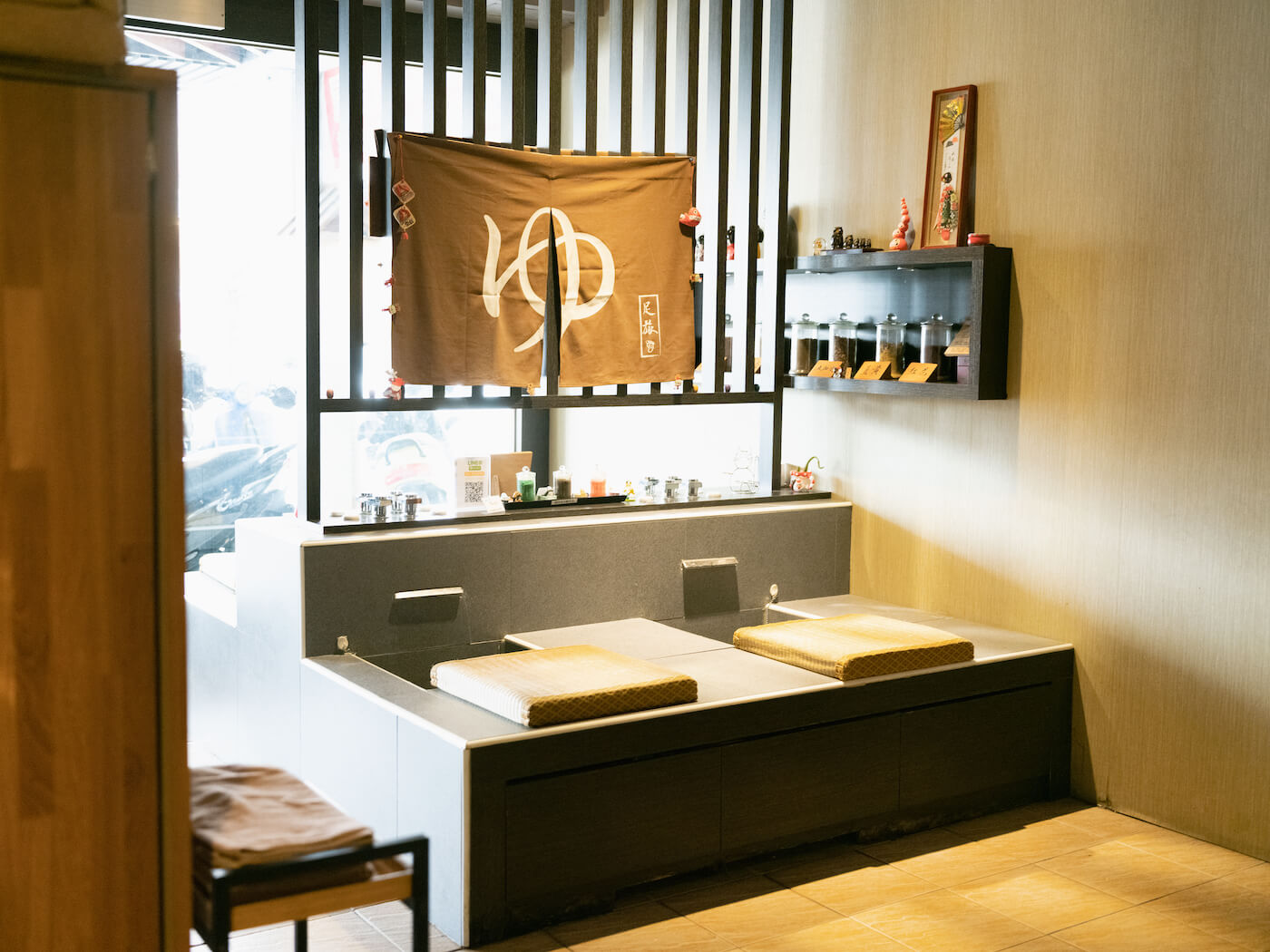來到位於中壢後火車站附近的「足旅養生行館」,泡一池傳統日式足浴,舒緩平日痠痛的雙足。門外掛著一個大白燈籠,上頭寫著「足湯」,一張張許願繪馬隨風搖曳,店內散發暖暖的黃光,搭配輕柔的音樂,泡著日式足浴池,恍惚間以為自己來到了日本旅行。