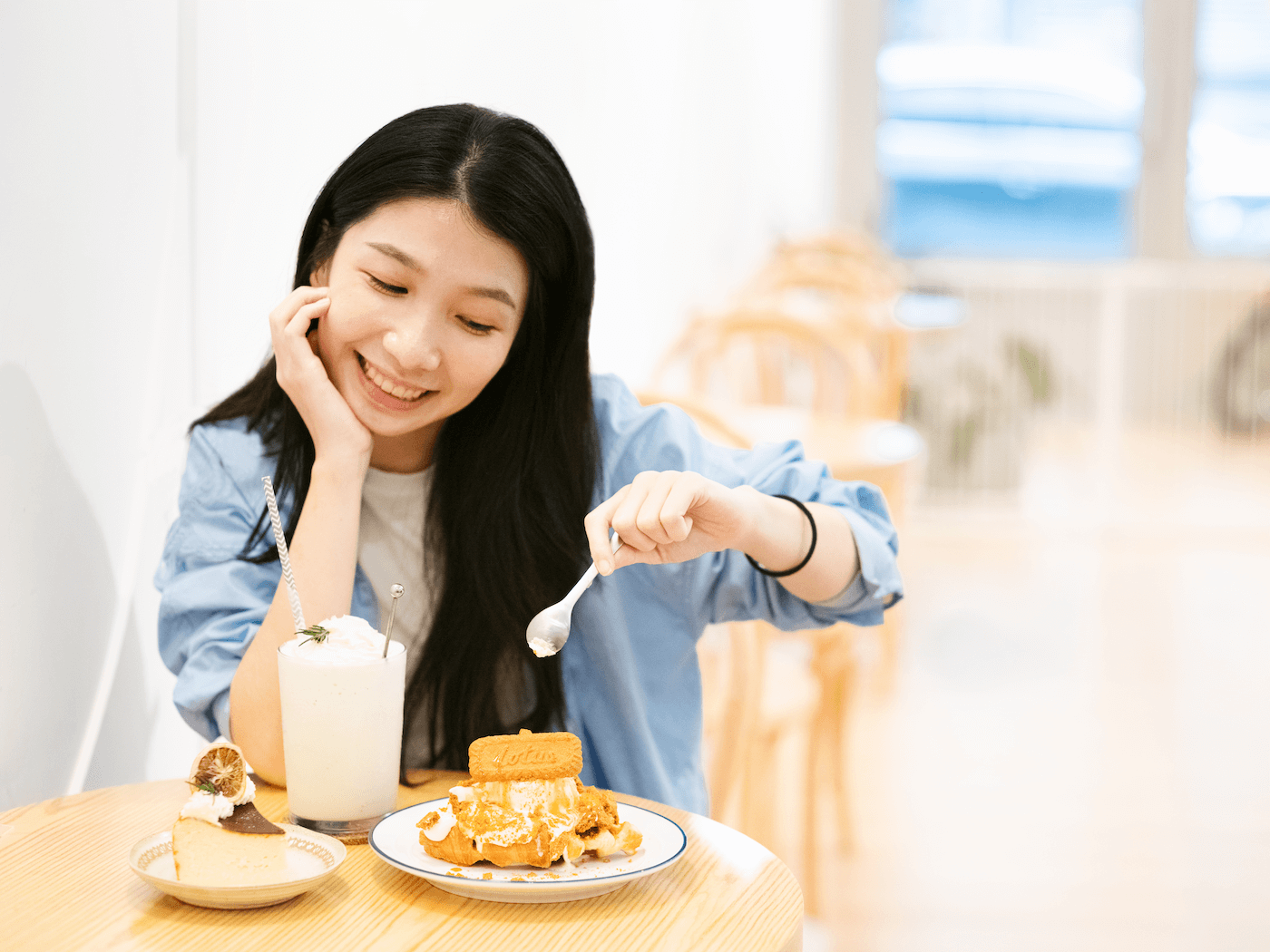 從中壢火車站前站步行約15分鐘來到「陪你咖啡Petit coffee」。走進簡潔明亮的店內,撲鼻而來的甜點香氣,讓心情立即溫暖了起來。咖啡館由Kevin與Mei一同經營,兩人在甜點創作上相當用心,像是慕斯般的巴斯克蛋糕,絲滑綿密,佐以檸檬提味甜而不膩;流行的韓風甜點可朗芙,將可頌的酥脆與鬆餅的彈性融為一體,淋上自行熬製的焦糖醬,將椪糖磨碎加入鮮奶油中,口感層次豐富,一入口就是滿滿的幸福感。