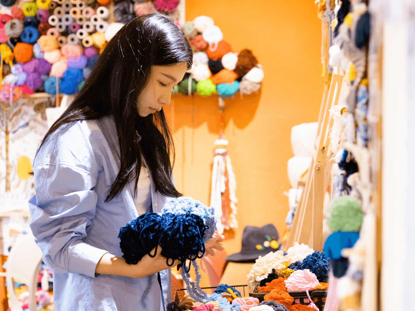 Ita分享,梭織是一種編織技法,可見於台灣原住民族的織布機,到現今的紡織廠,在國外也有不少運用梭織創作的藝術家,特色為創作自由度高,能做出如掛畫、杯墊、雲朵掛飾、包包等手作物。織線穿梭在織布板上,從手中慢慢織出成品,梭織不像考試一樣有分數高低,「以直覺選擇織線,接受自己的作品,無論做出什麼樣的作品,都是好的。」在慢下來的時間中,聆聽自己的直覺,將千頭萬緒化作織線,每織一點,煩思便少了一些。