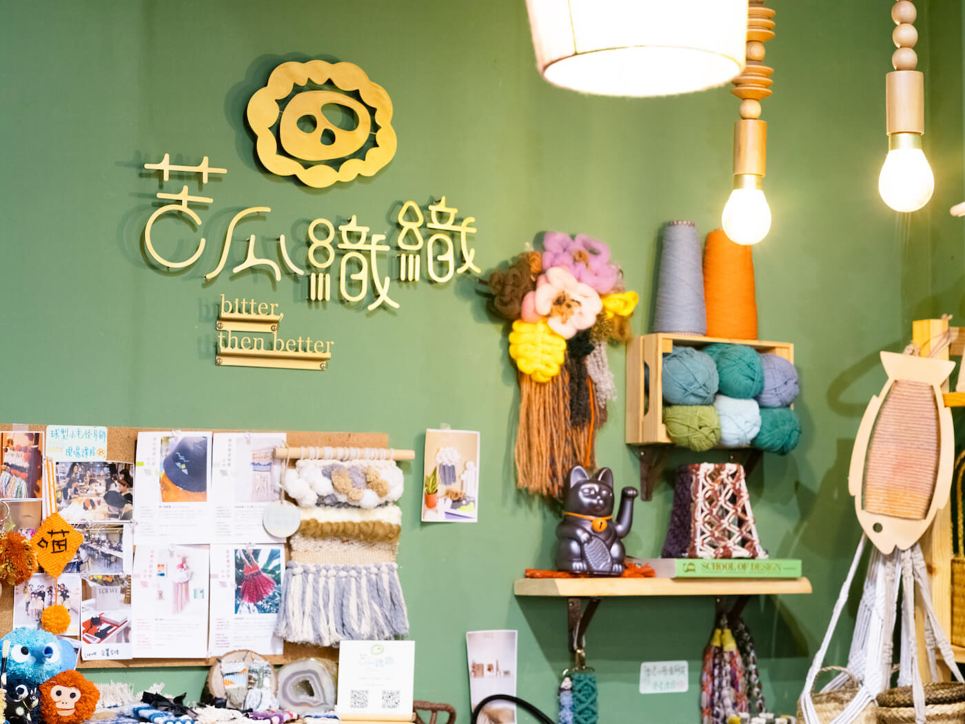 飽餐一頓後,步行約7分鐘即可抵達馬祖新村眷村文創園區,成排的老宿舍羅列,舊磚瓦、老木窗,彷彿時空凝結,回到舊日時光,其中招牌寫著「苦瓜織織 Bitter, then Better」的老屋,現在的主人是2020年進駐的青年店家,由Ita與Amber共同創立以「梭織」為主的工作空間,能在這裡學習編織相關手作課程,以及購買編織作品及設計選物。