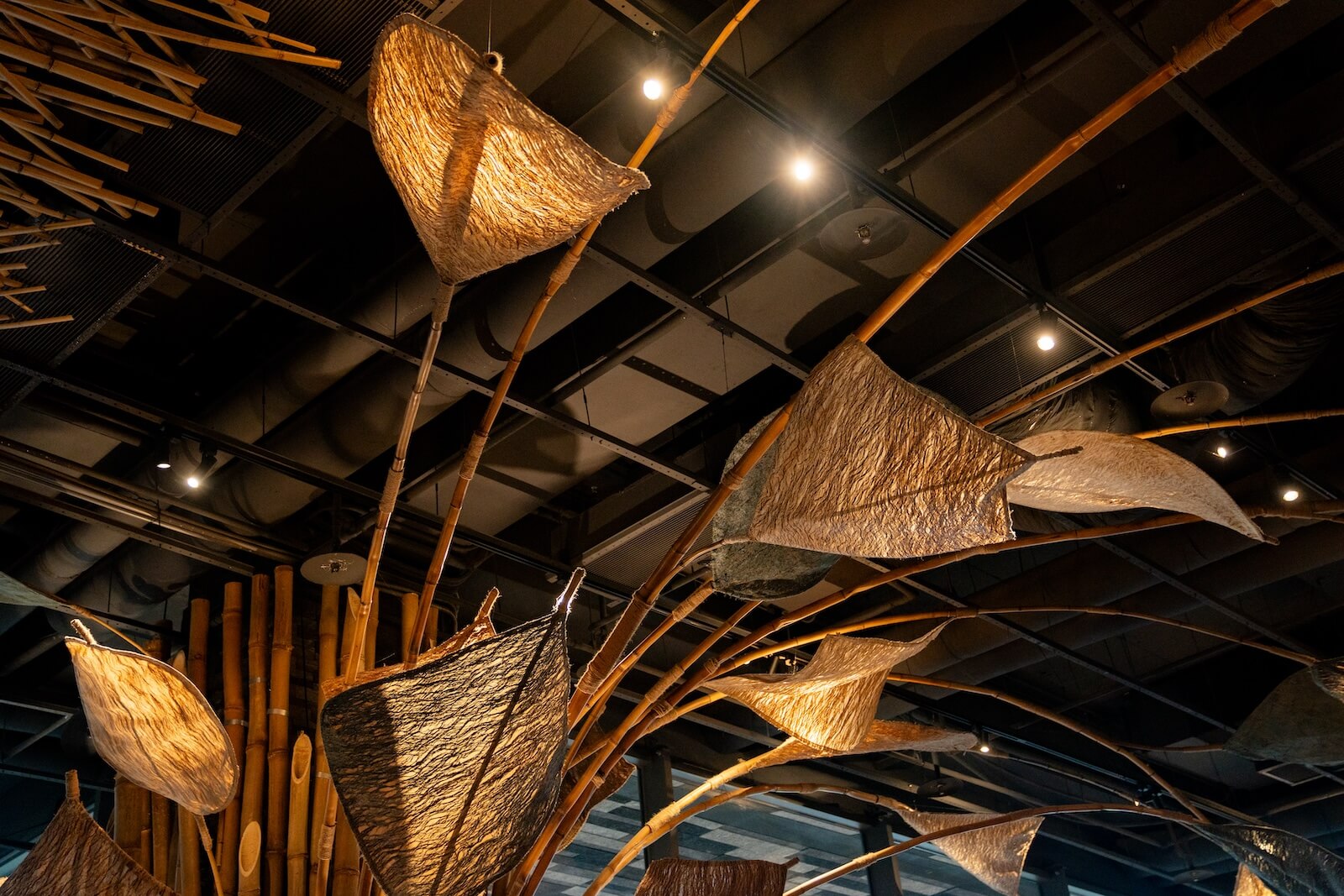 南島文化的燦爛不只在於飲食,因此,鹿馬岸也從物質著手,將族群遷徙的痕跡與象徵物添置於店內。其中最為巨大的裝飾物「生命樹」便置於餐廳中央,是藝術家徐香蘭以構樹製成樹皮布再創作出的作品,馬耀・喇外常感惋惜,「臺灣原住民族曾有過以樹皮為衣的服飾文化,只是到了近代,隨著紡織技術的發展,樹皮布文化已逐漸沒落。」