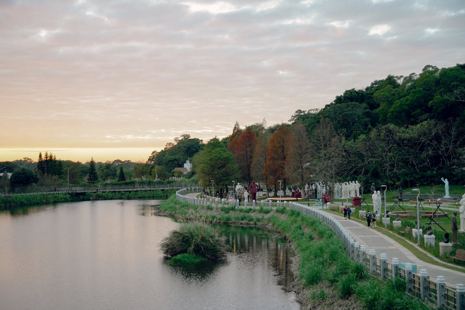 旅程的尾聲,一路向大溪山區駛去,抵達慈湖紀念雕塑公園,近300座蔣公銅像矗立,彷彿歷史光影凝結於此,成為全台獨有的雕塑藝術園區。園內蜿蜒的步道貫穿雕像群,帶領遊客穿越時光隧道,飽覽小橋流水的雅緻庭園造景。