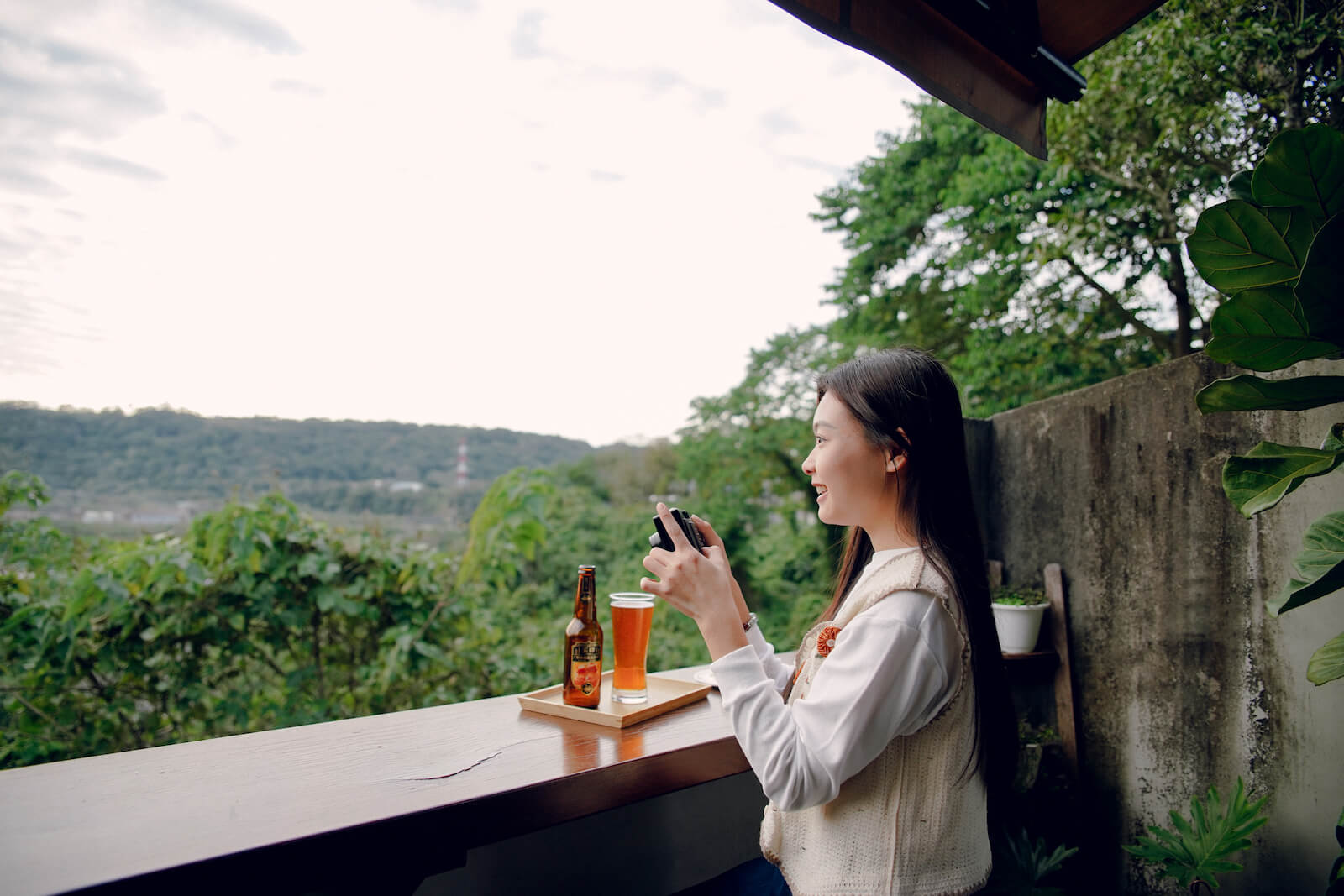 邁入小舖後院的半室外用餐區,斑駁的牆面以復古窗花妝點,保留老宅風光。可一邊品飲咖啡,一邊欣賞山景綠意及大漢溪夕照,享受慢活的用餐時光。物產小舖以連結這塊土地的美食、文化和傳統價值的經營理念,成為探訪大溪的亮點。