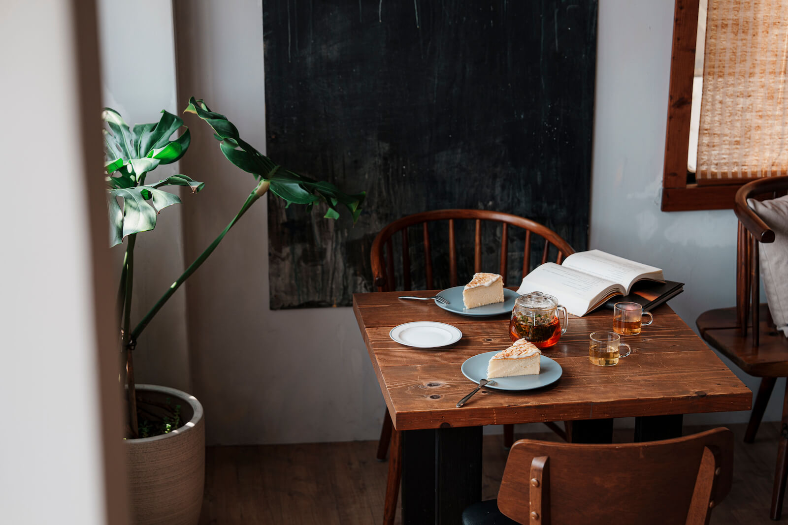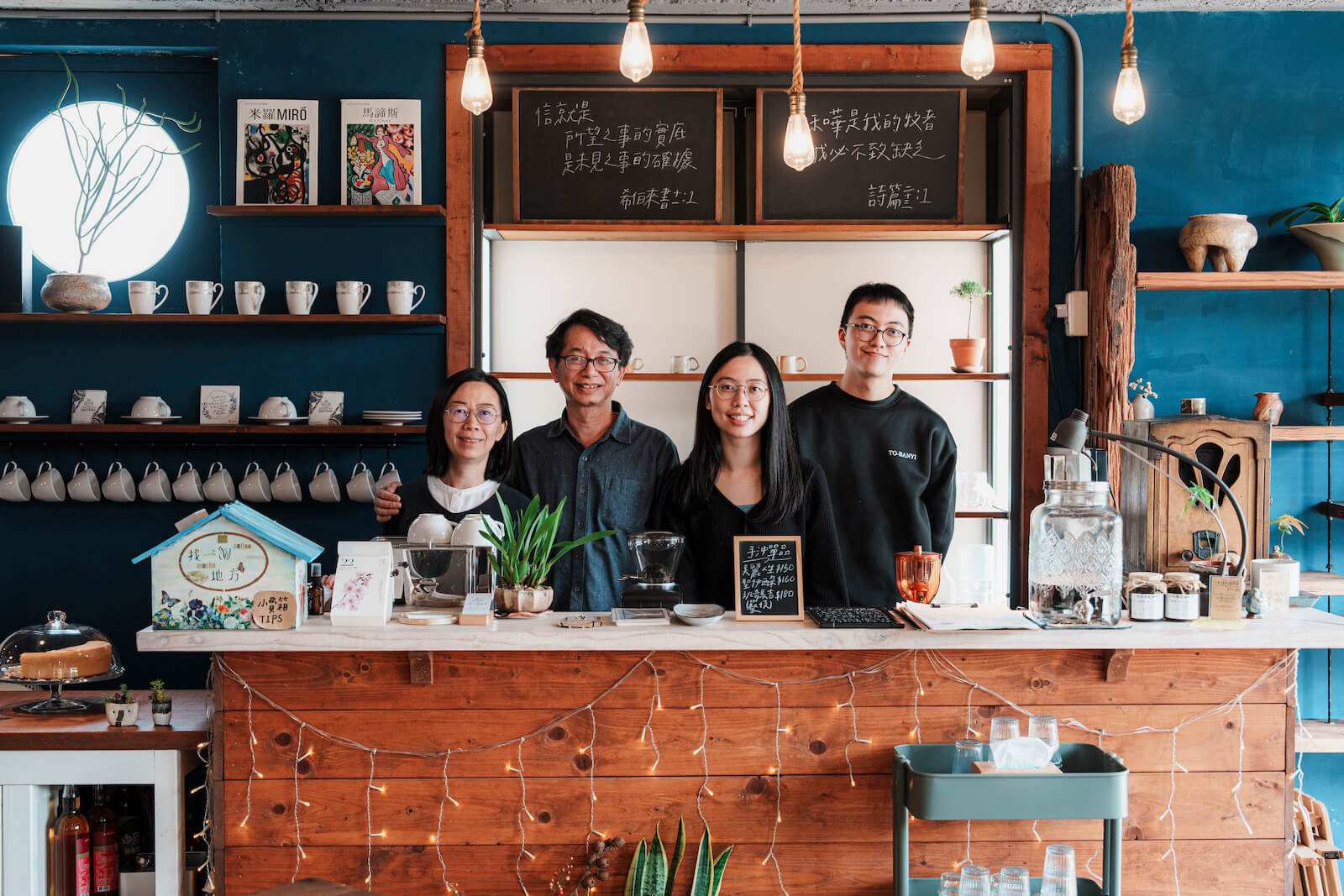 非科班出身、也無餐飲經驗的余姓一家人,秉持先做再說的浪漫,從簡單的菜單、飲品、蛋糕開始,邊學邊做,歷經幾次爭吵才終於磨合彼此的堅持,在經營的過程中整合出店內現行的流程與做法。Joyce打點店內大量綠植,思璇在各個角落擺上喜愛的小物妝點,阿哲發揮健談開朗的個性,微笑接待每位來客,即便店內忙碌也能讓客人們感覺自在放鬆。