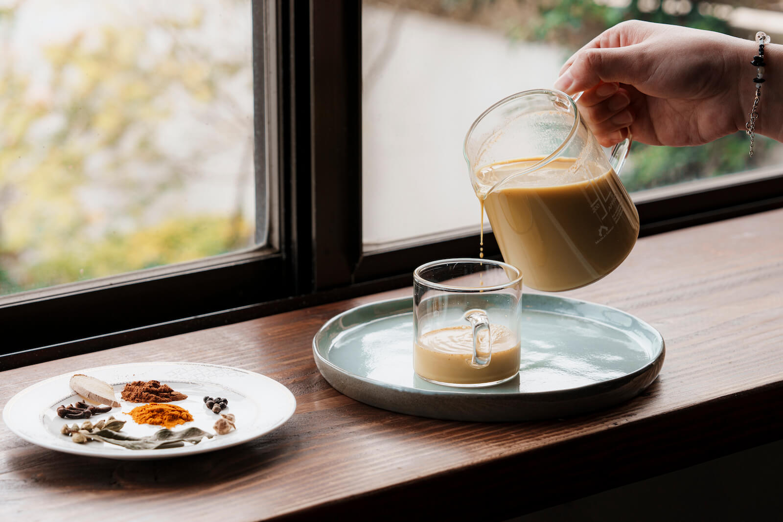 以肉桂、薑黃、丁香、月桂葉等材料調煮的香料奶茶,香氣十足。