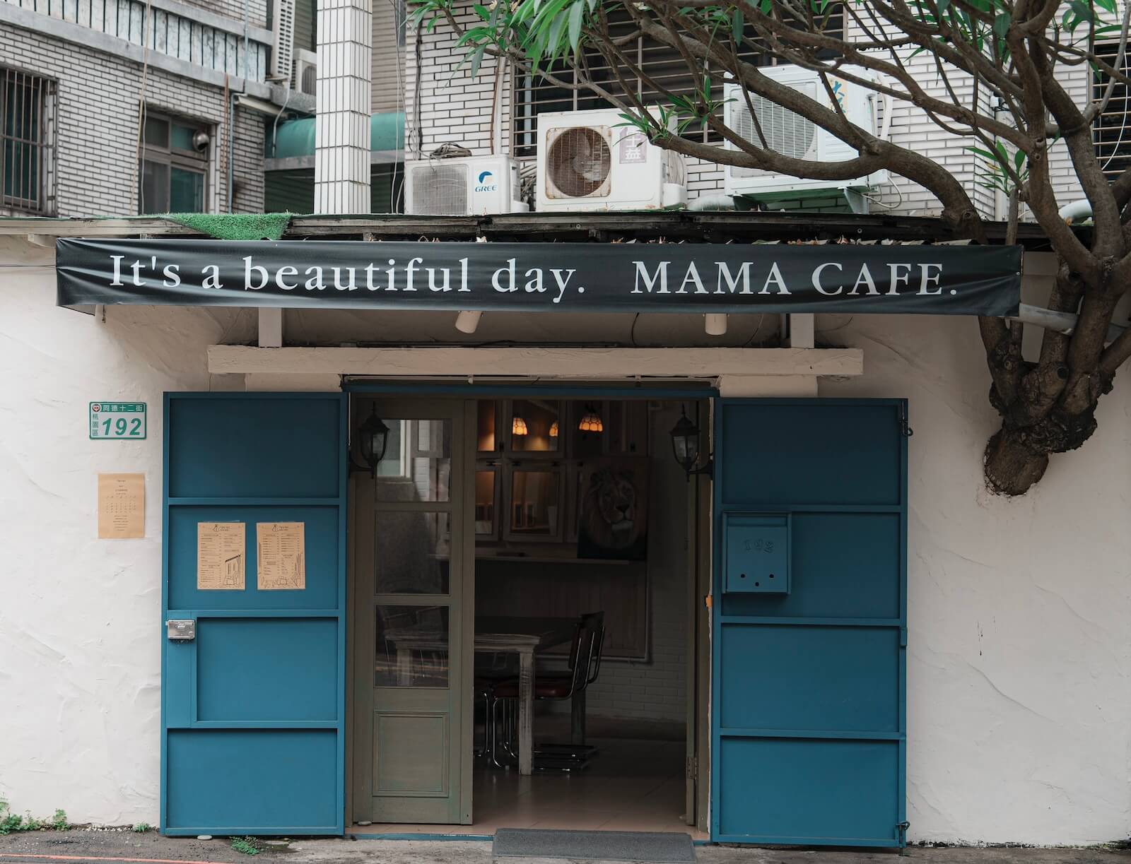 從桃園藝文特區轉進一旁同德十二街,「MAMA CAFE」紺青色的門店格外醒目,嵌合進建築中的雞蛋花老樹,自牆壁向屋頂上散開枝葉,夏初午後的日光穿透樹冠,樹影落在粉刷潔白的牆面,投射出斑斕餘蔭,走近小店,恍如踏入地中海某處靜謐村落。
