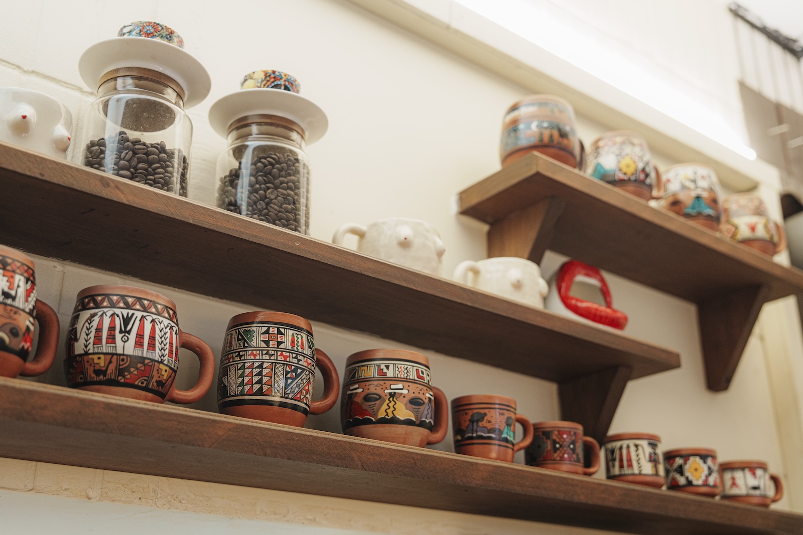 櫃台木質層架上紋樣各異的馬克杯、滿牆秘魯羊駝毛製成的毛氈玩偶、從澳洲扛回的巨大鯨魚畫,好不容易擁有自己的餐館,Wendy與Cleus巧用珍藏的紀念品裝飾店裡每個角落,即便不刻意向誰提起,來訪的客人們也總能察覺那些擺飾的獨特,每件都藏有兩人從異國帶回的記憶。
