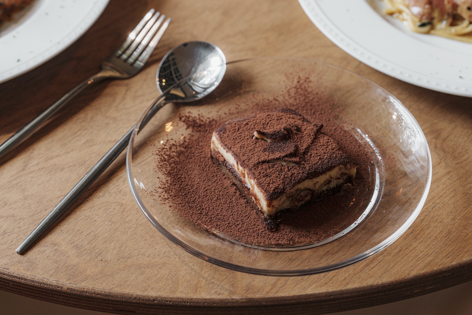 浸漬濃縮咖啡的手指餅乾與馬斯卡彭起司,口感順滑,再撒上可可粉,在苦與甜間找到平衡。