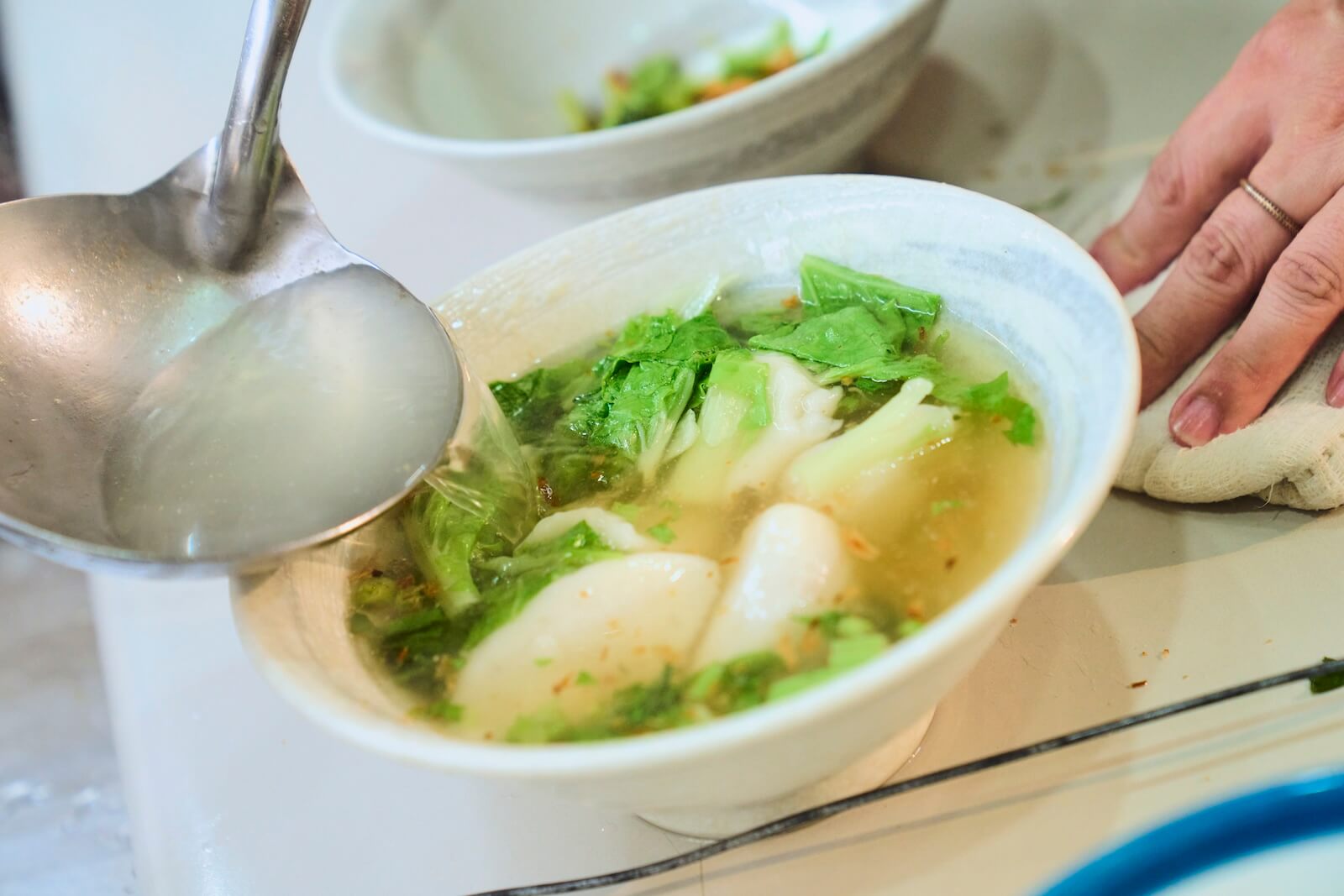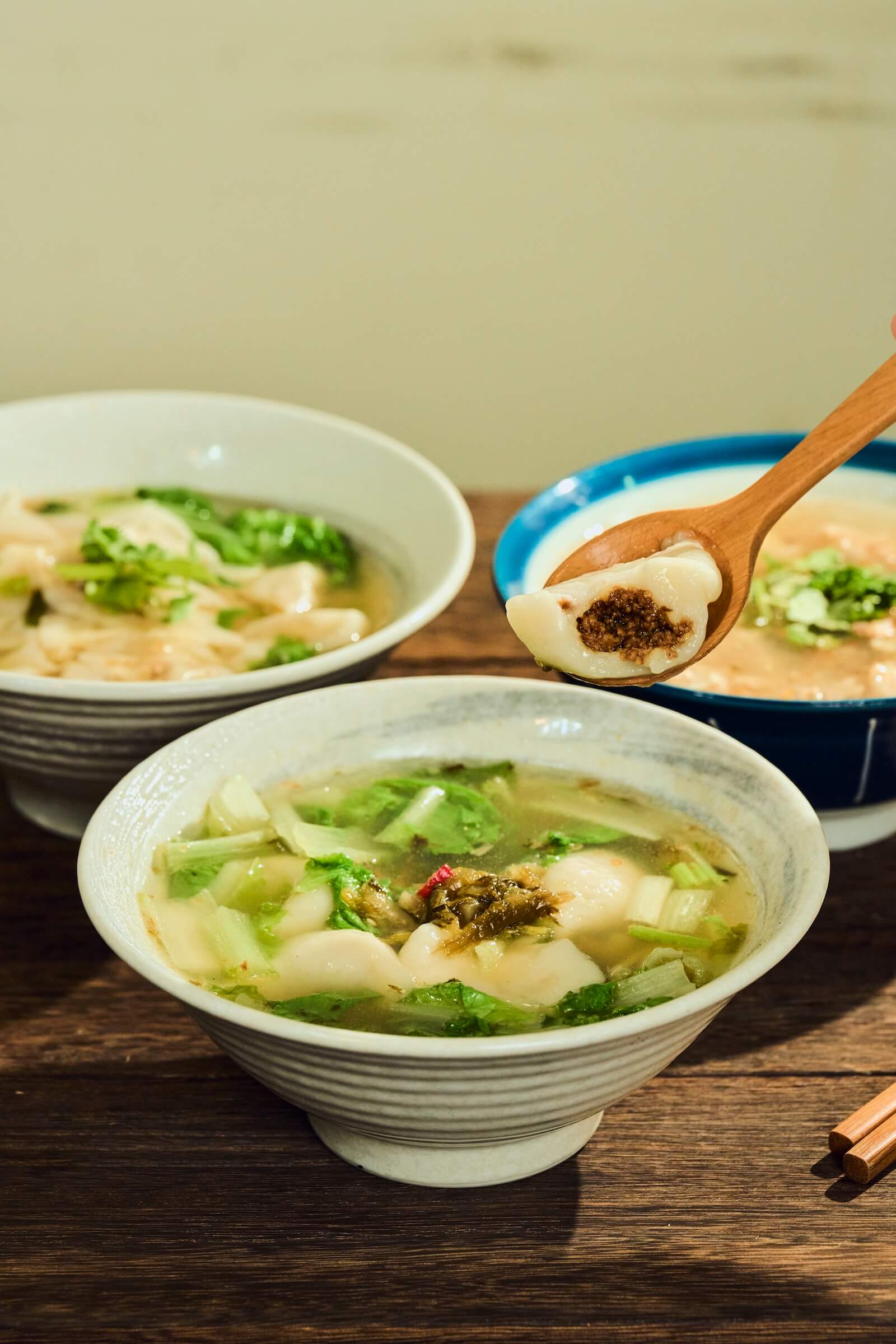 「肉羹湯」配料實在,肉羹口感紮實有彈性,勾芡後羹湯濃稠易於保溫,特別適合細雨紛飛的寒冷天氣,熱呼呼地喝上一碗,胃暖心也暖;「餛飩湯」相對清淡,餛飩皮薄順口、肉餡飽滿,起鍋前撒上香菜與白胡椒,滋味簡單熟悉,當香氣隨熱氣蒸騰,就喚起食客對新年的記憶,回到兒時家族團圓的時光。