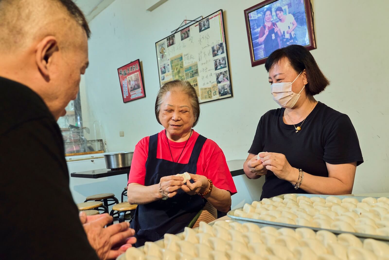 湯圓寓意團圓,被寄予黏攏家人、團結一心的美好意象。現年78歲的老闆娘詹喬甯明白,很多客人回來光顧,是想藉著食物與味覺記憶,暫時放下時間的洗禮、重回舊日年代,因此即便鹹湯圓做工繁複,他們仍堅持初代傳承下來的手藝,如今交棒給第三代的兩姐弟,由弟弟林秉澤擔當後廚備料大任,而姐姐林岳蓉則負責外場工作。