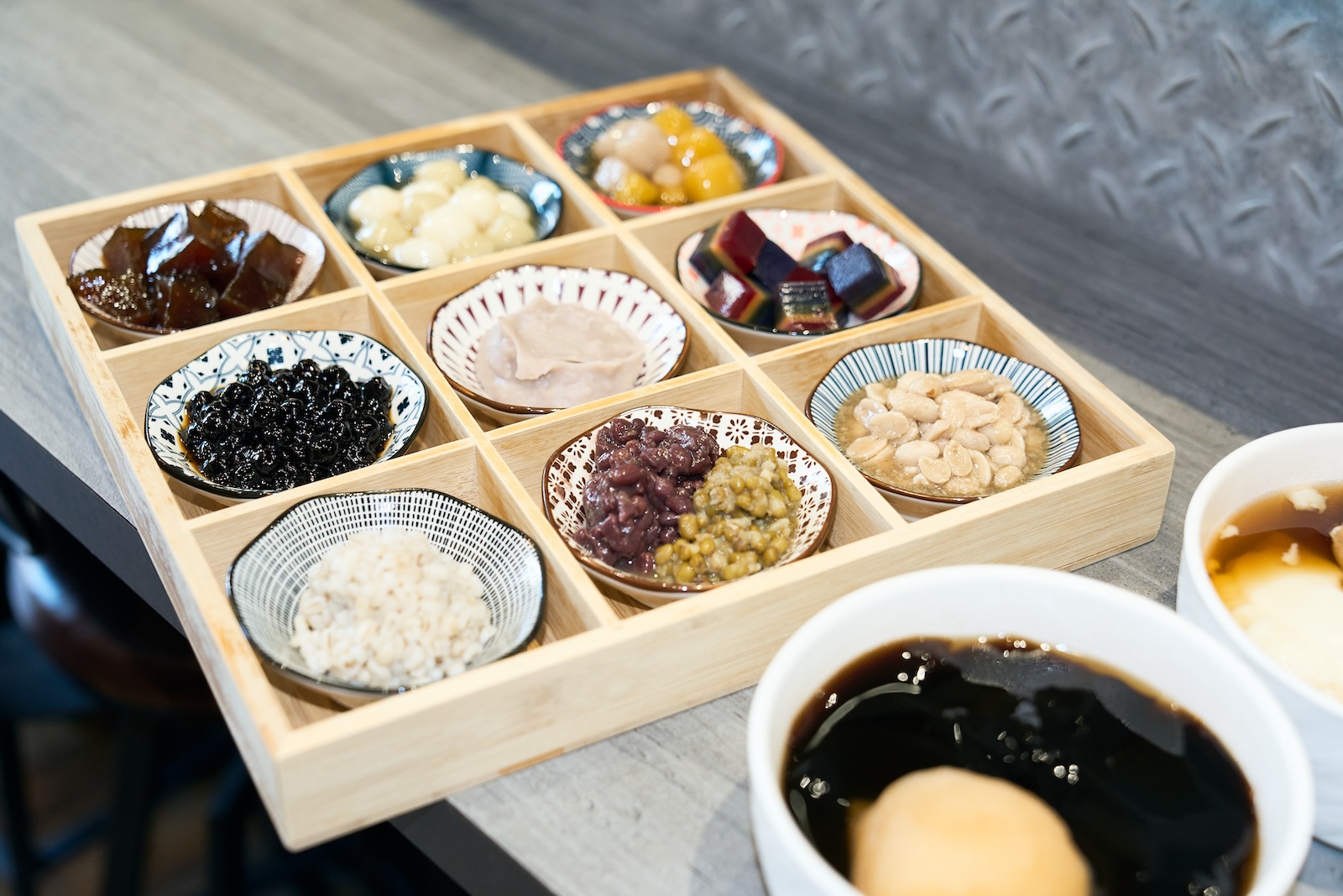 包含豆類、黑糖粉粿、珍珠、湯圓等,以及假日限定的彩虹粉粿,所有配料一次擁有,適合不想做選擇的甜食控。