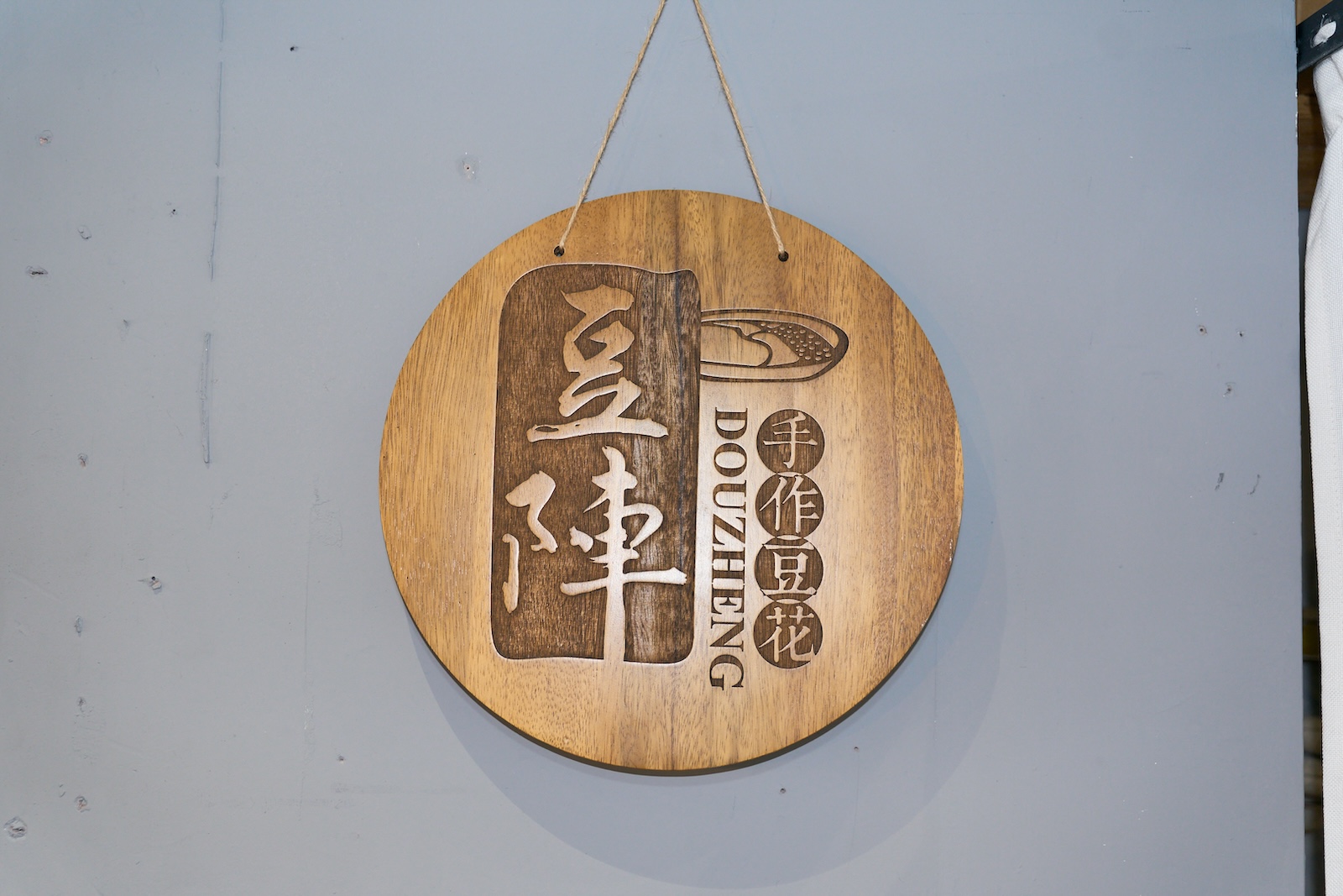坐落桃園蘆竹區街角,一家鐵捲門繪有攤車圖樣的小店,在午後兩點緩緩開張,這裡是「豆陣。手作豆花」,一間融合了創意與臺灣代表性小吃的甜點店。精巧的空間漫溢著黃豆磨漿後濃郁的天然香氣,混合黑糖自帶的甘蔗與炒糖甜香。木質吧檯後方,店主「大可」穿前顧後,一面招呼客人點餐結帳,同時手上動作不停,舀豆花、挖配料、淋糖水一氣呵成,輕快俐落地開啟豆陣的營業日常。