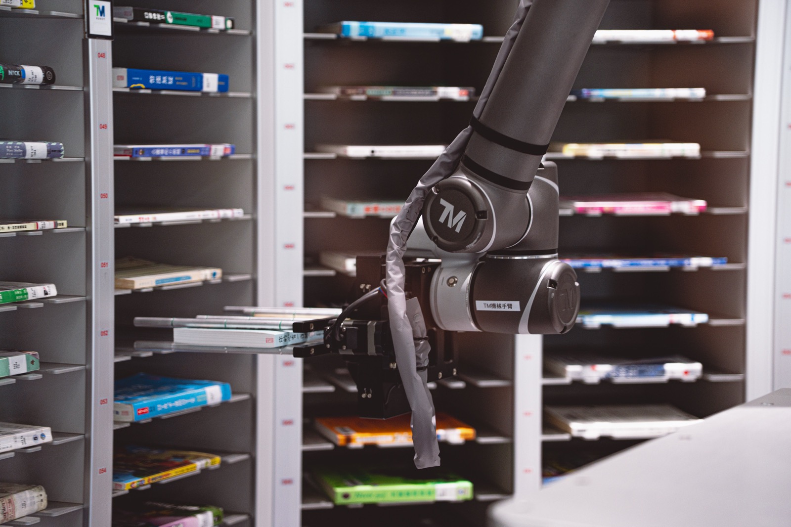 走進青埔智慧科技分館,最先映入眼簾的是「機器人預約自助取書區」,看著機械手臂俐落地自書櫃取出讀者預約的書籍,再緩緩遞至取書口,這個情景不僅是分館的一大亮點,更是啟動讀者借書念頭的關鍵。施照輝分享,機械手臂簡化了自助借閱的程序,也透過「開箱」本身的期待感,給足了讀者情緒價值,讓預約借書多了幾分樂趣和儀式感,為閱讀風氣的養成構築良性循環。