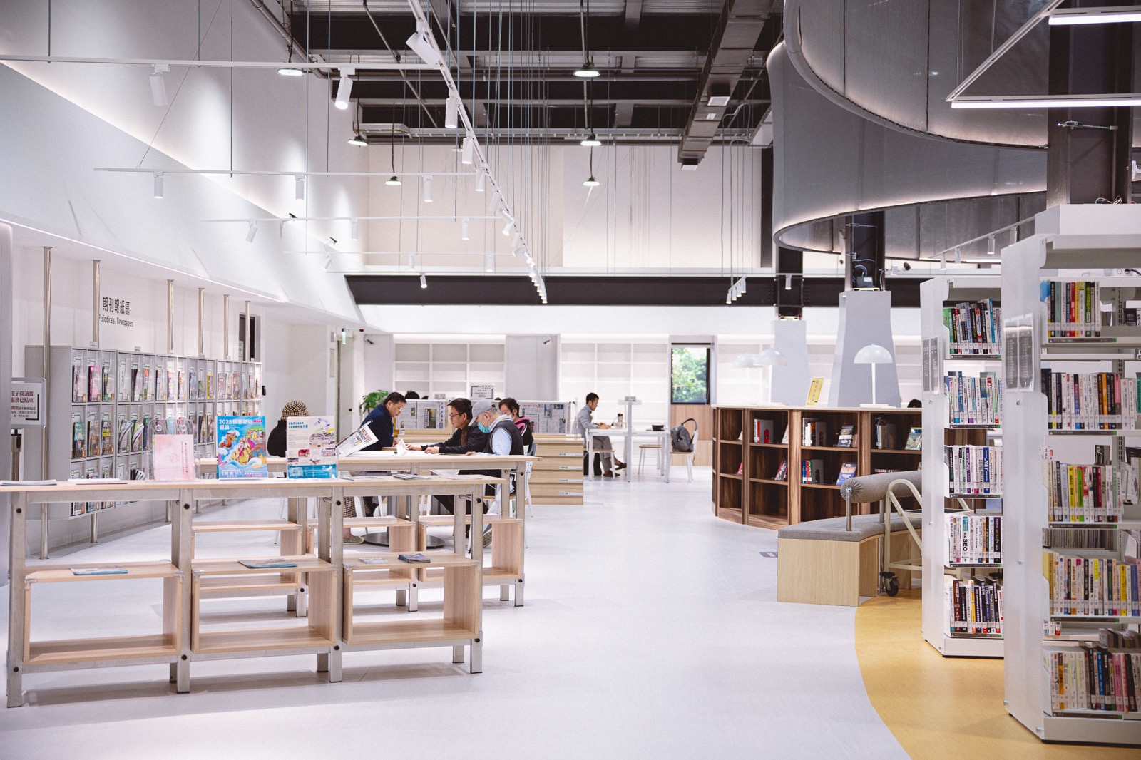 在永續面向,分館採用低耗能照明、環保建材與優化自然採光,讓整體空間以輕盈、有效率的方式運作。館藏系統也導入 SDGs 書單,引導讀者在查詢過程中自然接觸永續觀念,為環境貢獻一份心力。