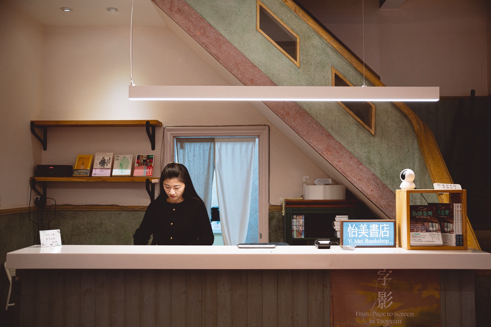 怡美書店坐落於單行巷弄間,自然的客流有限,但也正因如此,書店的每一個角落都能溫柔地容納來訪者,帶來恰到好處的舒適。「我們享受並珍惜與來訪者的每一次相遇。」育帆微笑說道,書店以手寫引言和標語取代傳統的分類標籤,透過具有溫度的導讀互動,為讀者的尋書過程增添探索樂趣。店內一隅還設有關於桃園的專書區,陳列在地作家著作、文學館出版品與旅遊書,成為認識桃園的一扇入口。