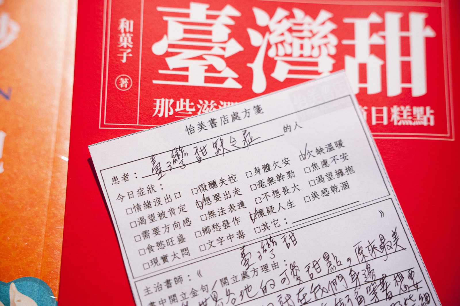 特別的是,怡美書店設計了「處方箋」紙條,靈感來自空間曾為診所的啟發。讀者可在處方箋上勾選自身當下的情緒狀態,寫下推薦的書籍和閱讀心得給下一位來訪者;這段延伸診療情境的書寫,讓讀者之間展開跨越時空的趣味對話。過去,醫師在診間裡開立藥方,為前來求診的人緩解身體的不適;今日,讀者在箋上留下心語,以文字療癒彼此的情緒與困惑。無論是當年的處方,還是此刻的隻言片語,人們總能在此獲得一份身心上的理解與支持。