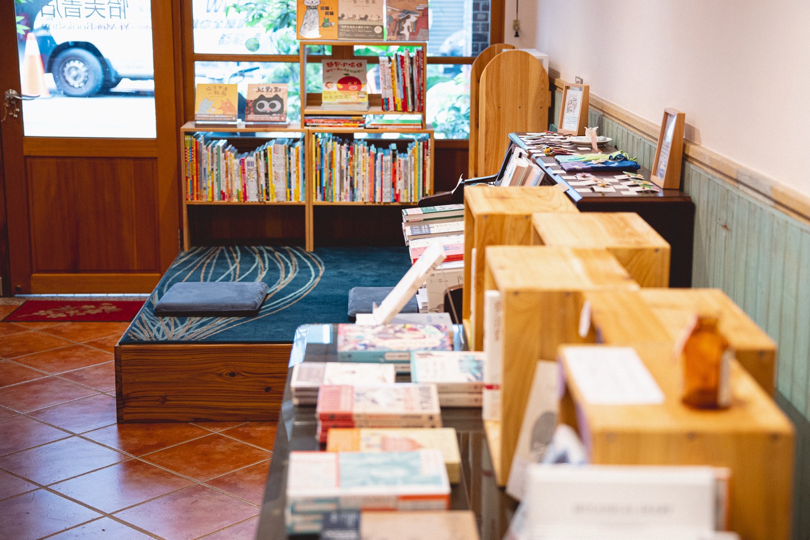 店內延續了建物既有的格局與紅磚拱門,也保留了徐家人的家具老件,僅以木造書架及桌椅佈置,讓昔日的生活氣息悄然滲入書頁。書店與景福宮、傳統市場比鄰,參拜的香火、攤販間的熙攘嘈雜,以及串門子時的寒暄,交織成街區的日常風景;作為這裡的新鄰居,怡美書店一面感受在地的生活樣貌,一面融入舊城的步調,為拜訪舊城區的人們,提供一個能駐足停留、彼此交流的機會。