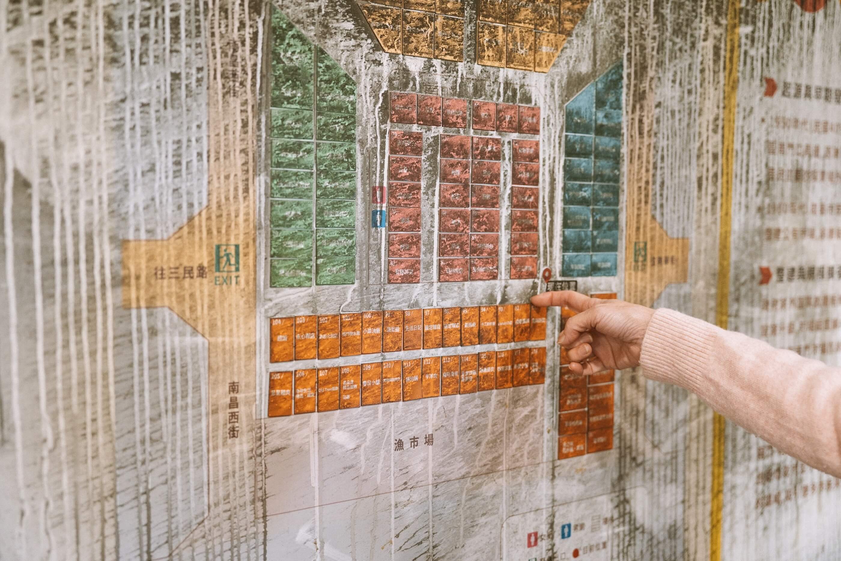 阿美姐帶著我們比劃南門市場的未來模樣,期待地說,「到時候這邊跟那邊會再放上南門市場的LOGO,讓大家一看就知道南門市場在這裡!」當傳統場域轉化為清晰的文化符號,期望這裡能重新植入桃園人的集體記憶中。