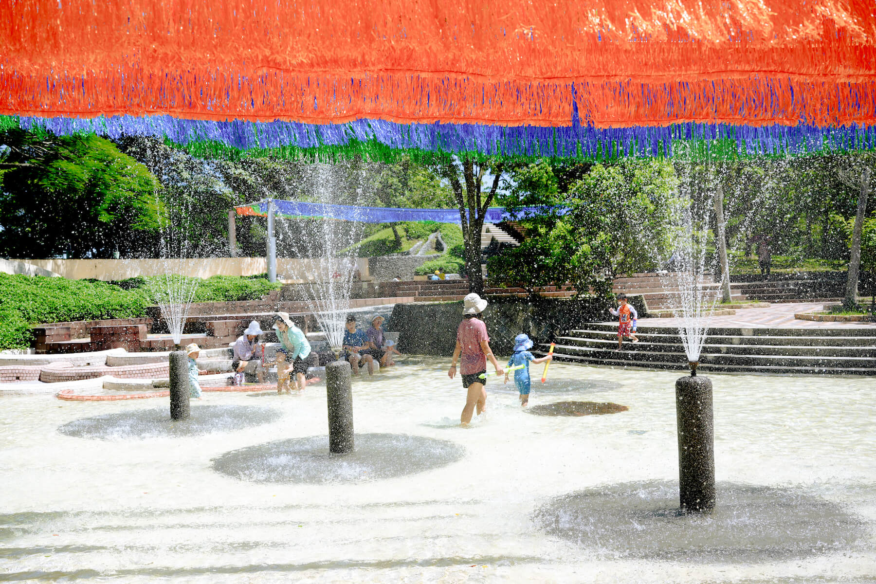 *旅人筆記:7、8月限定的戲水區,是親子最愛的消暑天堂!除了每週一及週五因清潔全日不開放外,其他時間從早上9點到下午6點都能玩水,周邊提供更衣室及淋浴間,方便在戲水後進行簡單的盥洗。