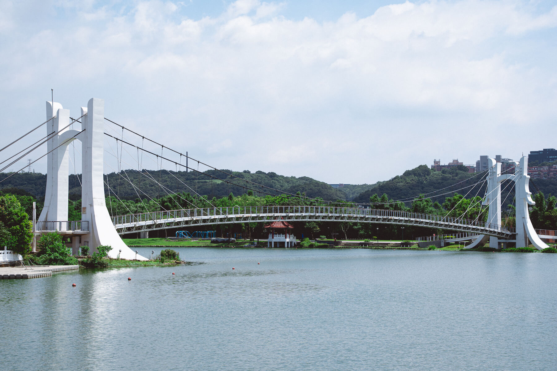*旅人筆記:龍潭大池不僅每年有精彩的龍舟競賽、跨年煙火秀,也開放SUP、天鵝船等水上活動,入夜後沿岸與吊橋點亮燈火,隨著光影變化映照湖面,如一場光與水合奏的靜謐夜曲。