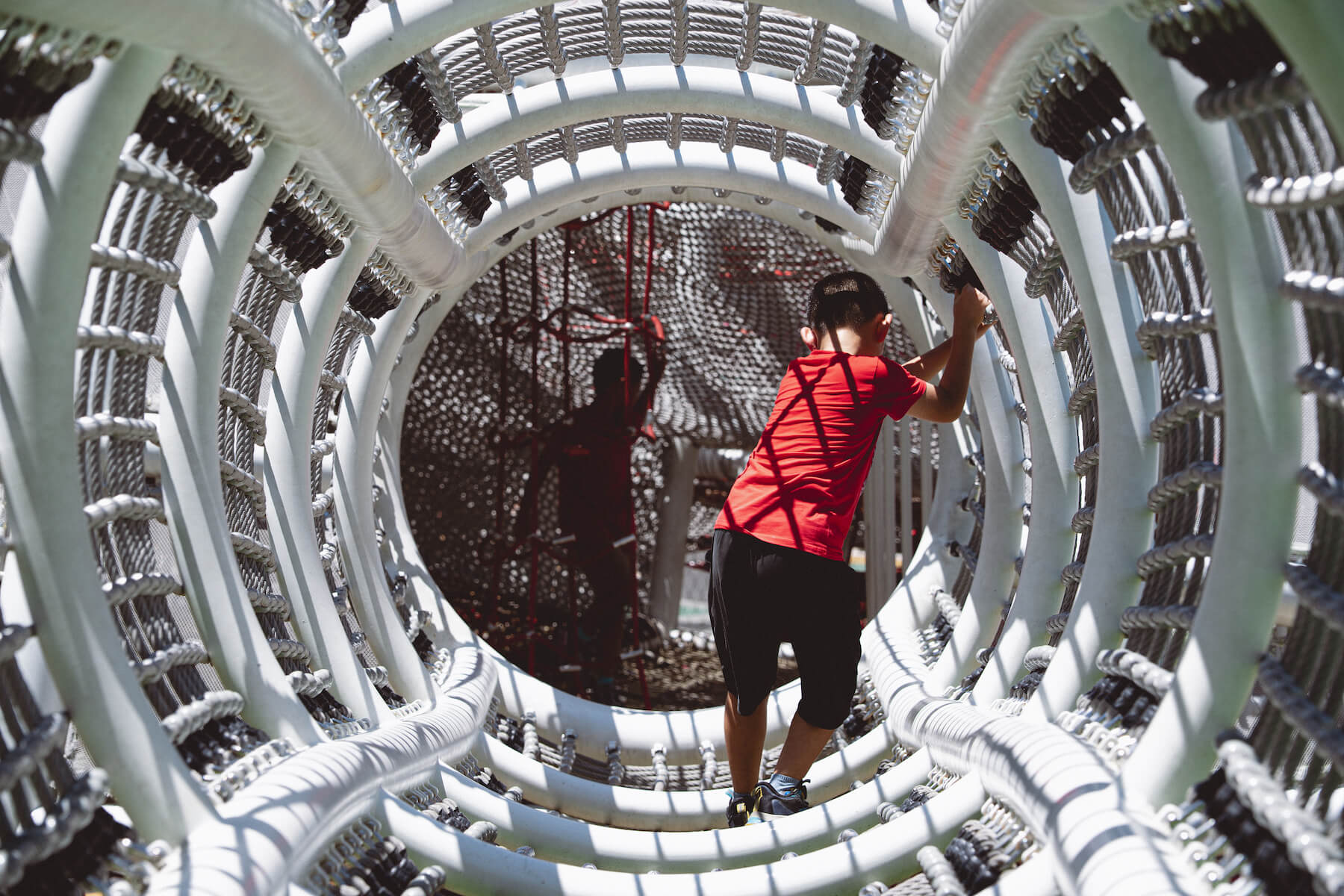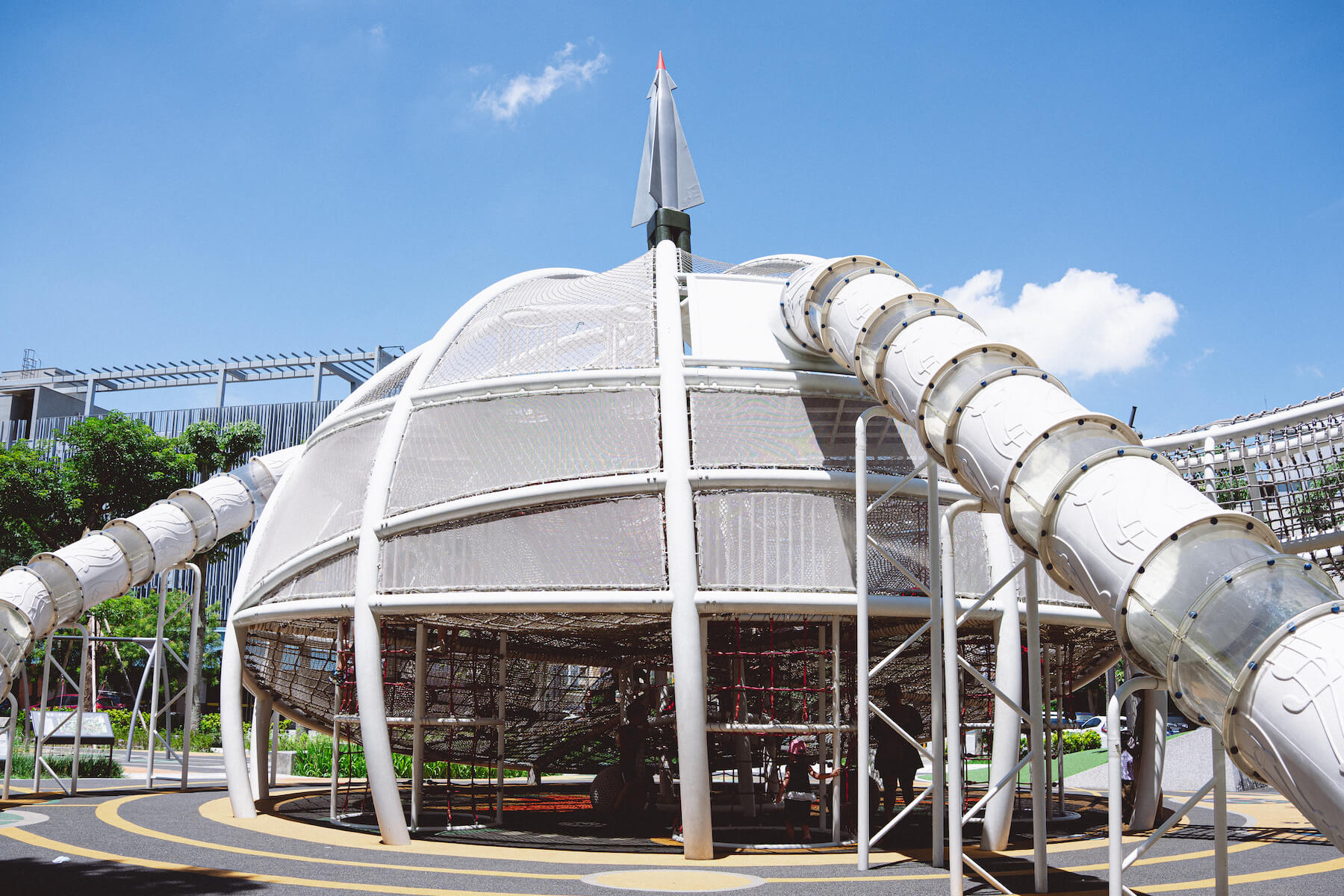 龍潭的台地與丘陵地貌,讓這裡成為早年軍事設施的重要據點,為延續歷史場景,「龍潭運動公園」將軍事記憶轉譯成親子共樂的空間。除役的F-5E戰機佇立園中,好似等待再次起飛;以勝利女神飛彈為靈感設計的攀爬網,成了孩子們玩耍的新領地。笑聲與記憶交疊,歷史總在生活的場域,邀請旅人理解守護這塊土地的故事。