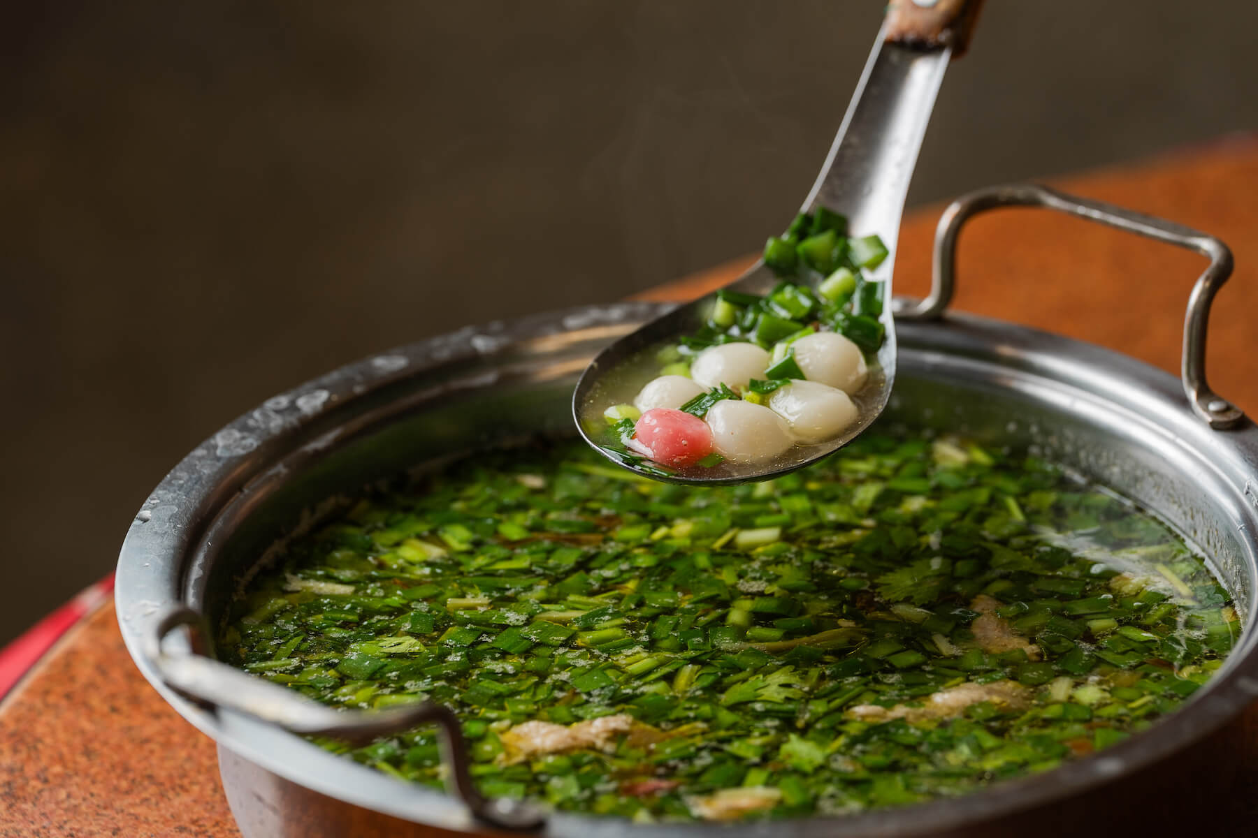*旅人筆記:首推「客家湯圓」,湯底鹹香濃郁,糯米湯圓帶點嚼勁,搭配香菇與韭菜,香氣十足。「一品焢肉燜筍」則是另一道經典菜色, 肥瘦比例剛好,滷得入味卻不膩口,底下的筍乾吸飽肉汁超下飯!簡單的料理,卻有著讓人想一再回味的魔力。