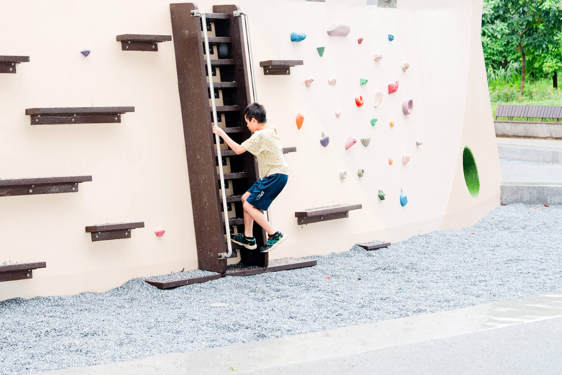 *旅人筆記:擁有19道關卡的「挑戰遊戲場」是公園內最吸睛的遊樂地標,攀爬、平衡、滑索等設施應有盡有, 適合愛挑戰的大小朋友;也有低齡孩童開發五感的沙坑與滑草區,加上鞦韆、滑梯與抱石牆,週末帶小孩來放電,大人也能玩得開心!
