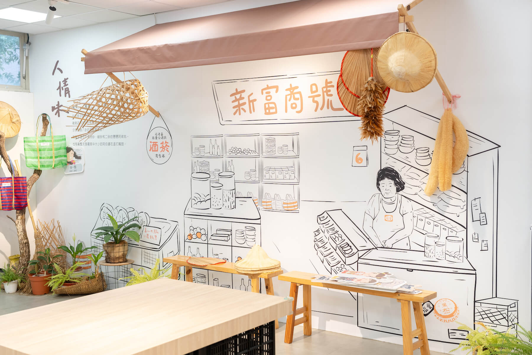 *旅人筆記:天光雜貨店將商品分為「客家小農」、「客家文創」與「客家百工百業技藝」三大亮點區域。貨架上藏著不少驚喜, 濃郁香醇的擂茶、香酥不黏牙的花生糖、風味獨特的地瓜酒,還有各色精工 手作小物。推薦花點時間慢慢逛,細品那份樸實而溫暖的客家人情味。