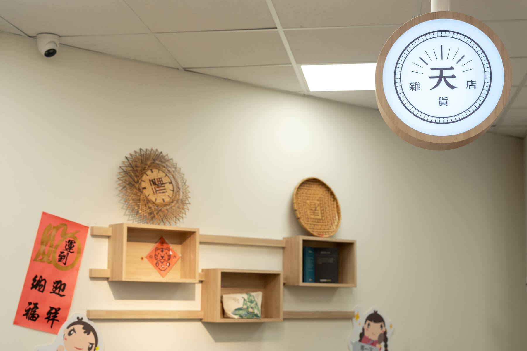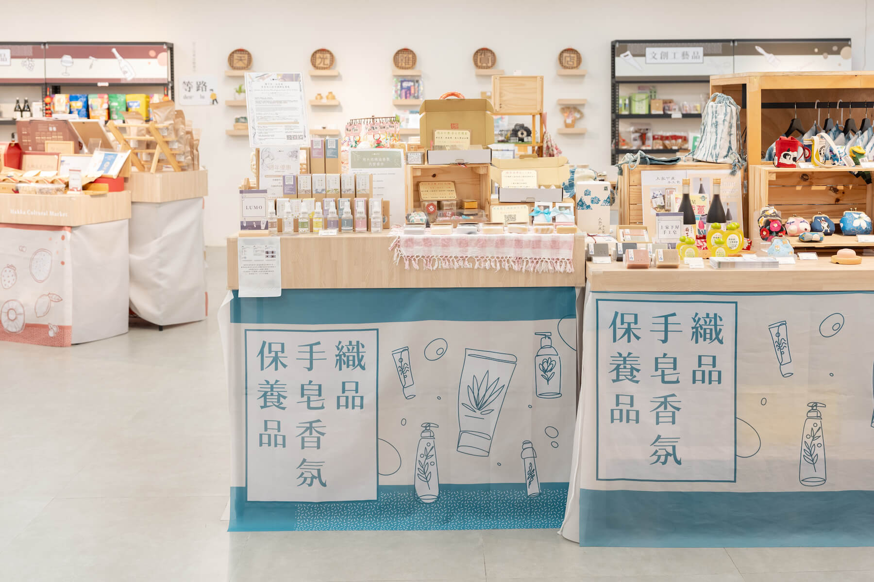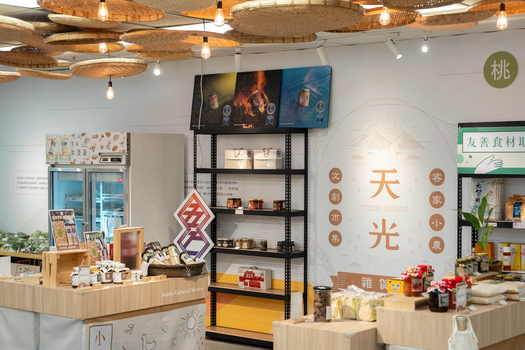 「天光雜貨店」位在平鎮新富市場一樓,大片落地窗從外面便可將店內一覽無遺,燈光溫暖明亮、陳列井然有序,空間融入竹篩、斗笠等懷舊元素,展現出內斂樸實的客家印象;秉持「天光研選,生活首選」的品牌理念,天光雜貨店匯聚來自客家小農、文創品牌與手作職人的精選商品,從悉心耕耘的農產與茗茶、香氣迷人的手工皂,到匠人手作的藍染布包、木藝器皿與香茅掃帚,每一件都承載著客庄的人文與風土。這裡販售的不只是物件,更是客家生活中細膩真實的記憶點滴。