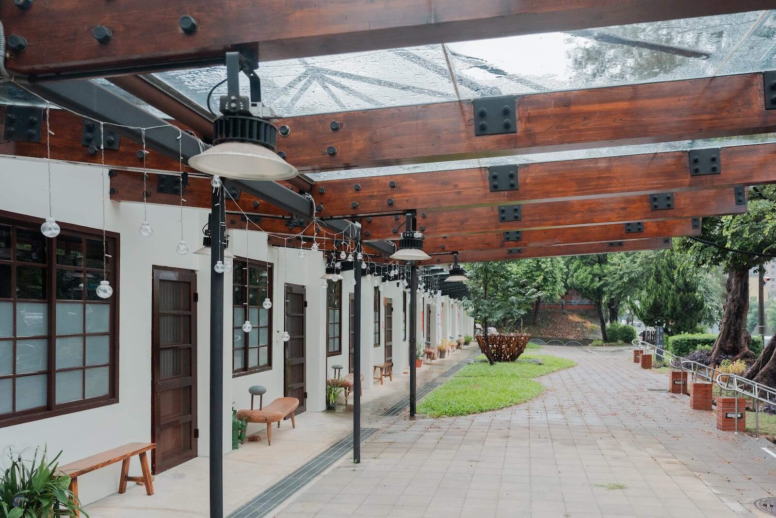 楊梅故事園區內的西照閭,曾是楊梅中學教職員宿舍,呈長條形,共有9間房間,一門一窗即為一戶,配置與眷村類似,但屋頂卻為日式黑瓦,呈現綜合日式與西洋的建築風格。現為推廣楊梅在地藝文展覽的多功能空間,不定期推出展演、講座與市集等活動。今夏「行動代號007:尋找楊梅事」展覽也剛拉開序幕,冷知識也不在話下——比如楊梅擁有全臺第二年長的770歲老樟樹,逛完一圈,好像已經掌握楊梅大小事!