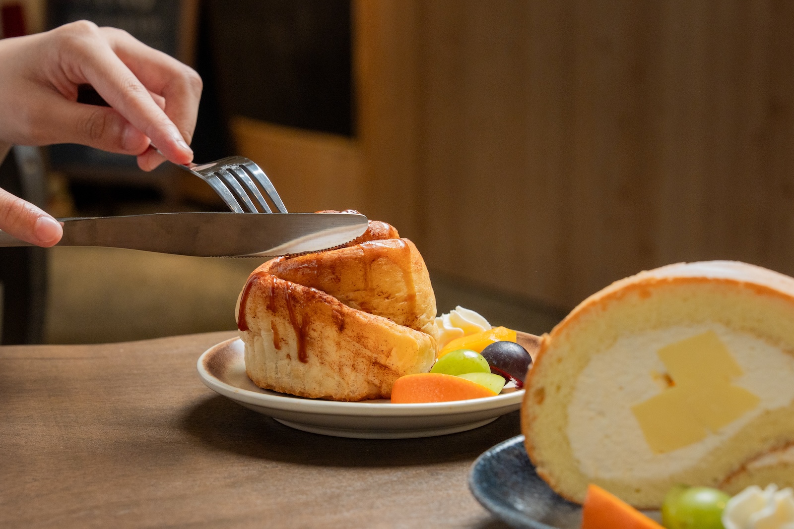 *旅人筆記:「校長茶」為招牌飲品,以張芳杰校長喜愛的香片(茉莉花茶)為茶底,香氣馥郁,推薦搭配「肉桂捲」,麵包體口感紮實但柔軟,肉桂香搭配烘烤得酥脆的核桃,每一口都療癒。