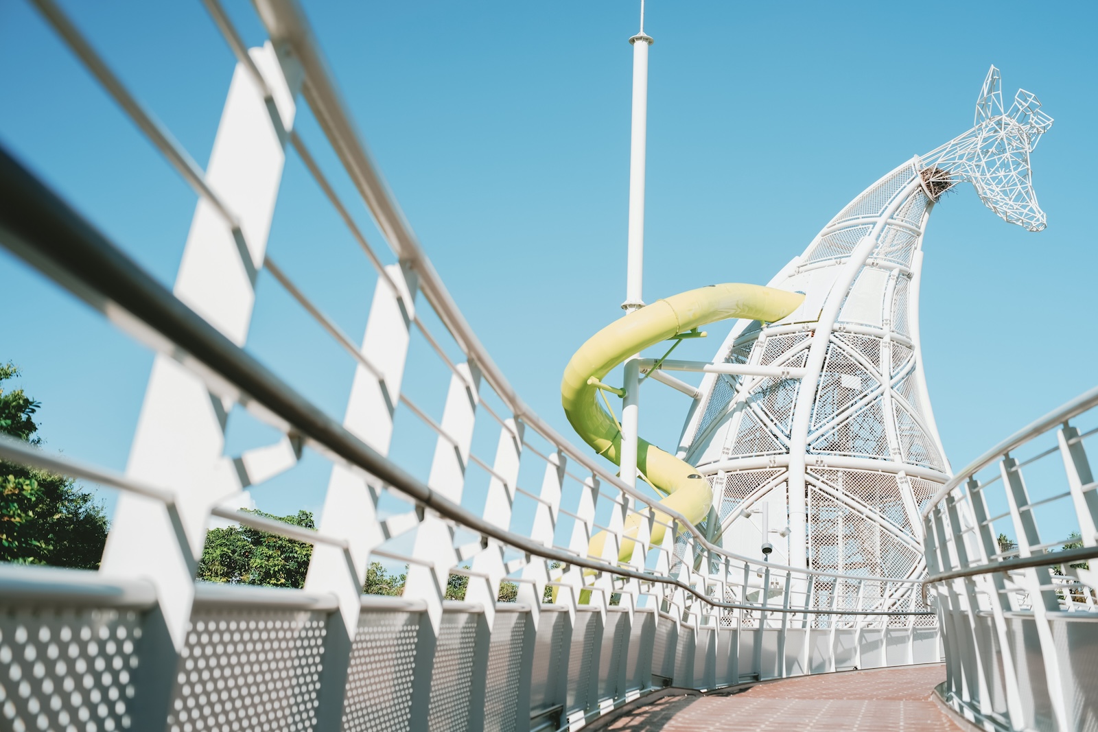 趁著夏季晴朗走進桃園八德,陽光傾瀉而下,城市輕輕喘息著,樹葉搖曳、笑聲飛揚。在藏著童趣與歡笑的地方漫步,穿梭在長頸鹿遊戲塔內的攀爬空間,伴隨一陣嬉鬧從滑梯頂端滑落;接續去探索巧克力的夢想國度,一顆巧克力化開在舌尖,甜得恰好。孩子們在玩具種類豐富的兒童寶庫盡情探索,或循著溪畔緩緩走向遼闊田野,感受寧靜的風,大人小孩都能在此找回單純的快樂。