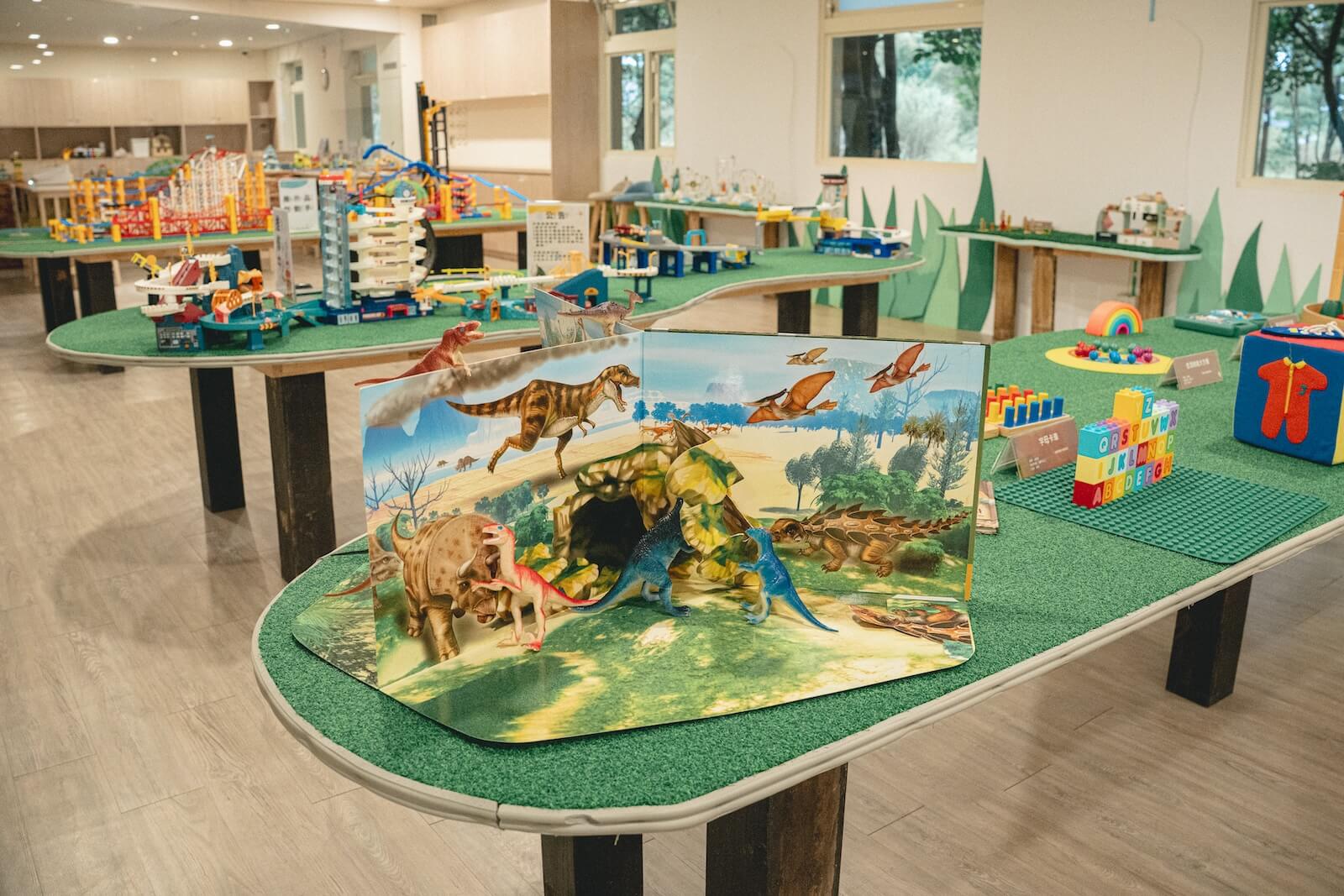 結束甜蜜的巧克力冒險,下一站來到綠意盎然的大湳森林公園,一起探索兒童玩具圖書館!園區由大湳營舍改建,結合玩具與兒童書籍,打造展覽互動區、玩具修復站、二手玩具交換區、積木主題區、親子遊戲區、STEAM 體驗區與圖書閱讀區等主題空間,啟發孩子五感學習。